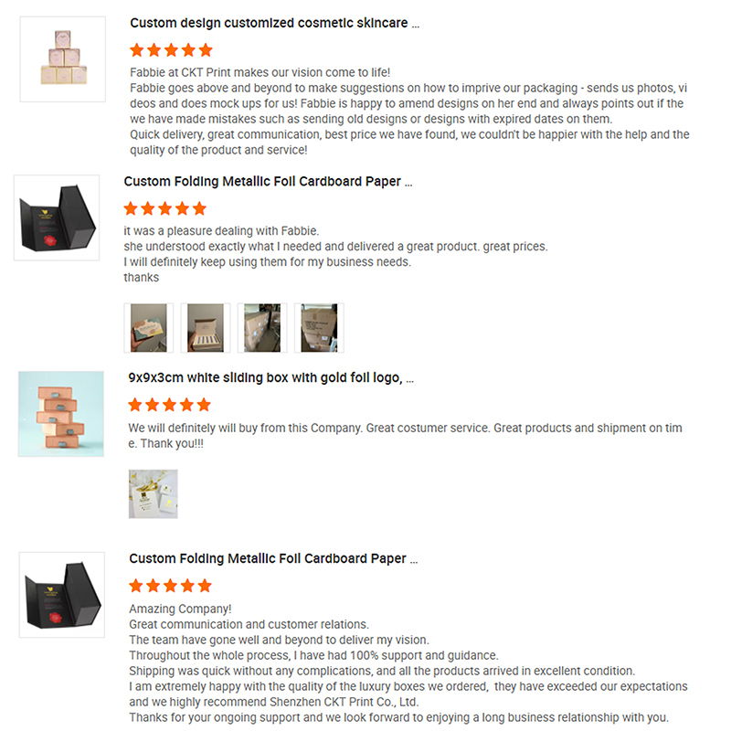 CKT Print Co.,Ltd는 중국 심천에 위치한 전문 인쇄 및 포장 제조업체입니다. 2005년에 설립되었으며, 180명 이상의 직원이 있는 20,000제곱미터 규모의 작업장에서 운영됩니다. 15년 이상의 OEM 인쇄 제조 경험, 첨단 장비 및 숙련된 기술자를 통해 뛰어난 서비스와 함께 고품질 제품을 제공합니다.